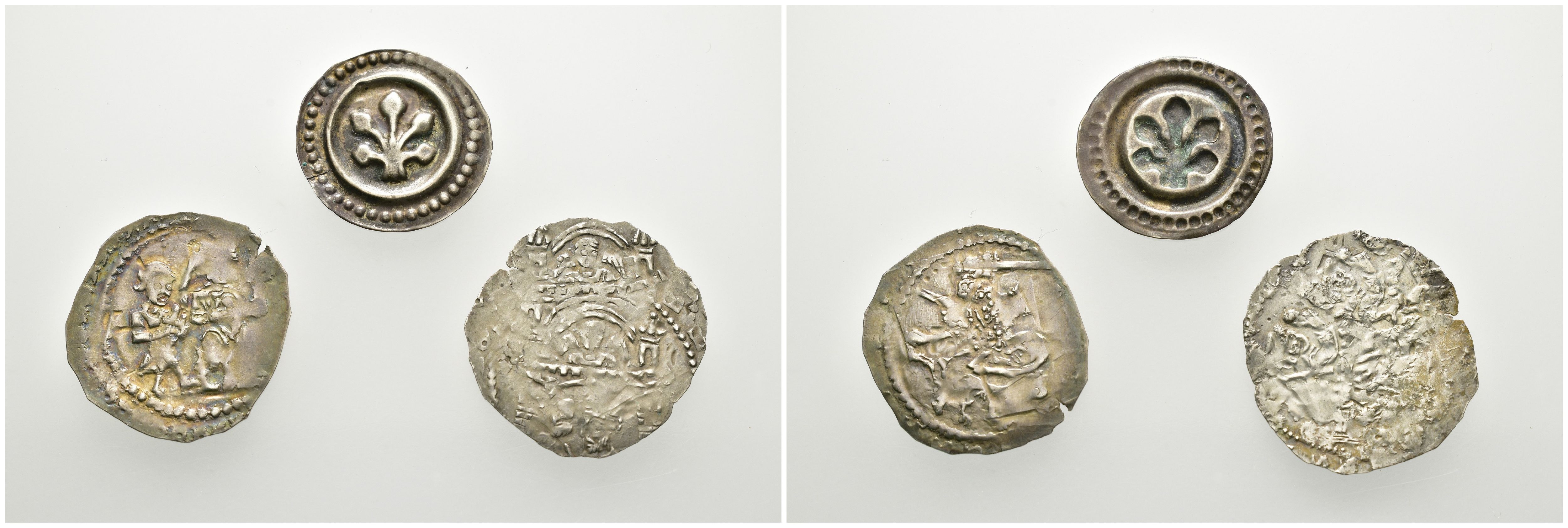 Römisch-Deutsches Reich, BODENSEEGEBIET, RAVENSBURG, KÖNIGLICHE MÜNZSTÄTTE Anonym. 1268-1300, Brakteat o.J. (um 1276). Dreitürmige Torburg, im Tor Stern. Cahn 208. Lanz 36. Rutishauser 413. Kestner-Museum 2551. 1 Ex. mit dunkler Patina. 2 St. fast St