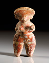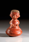 MEXIKO, Chinesco Westmexiko. Ca. 150 v. Chr. - 250 n. Chr. Menschliche Hohlfigur mit Nasenring, deren Oberkörper in einen breiten kugeligen Standfuß übergeht. Rötlicher Ton mit dunkelroter und grauer Bemalung. H. 11,9 cm. Leicht restauriert.