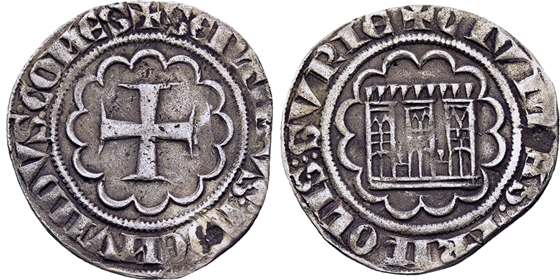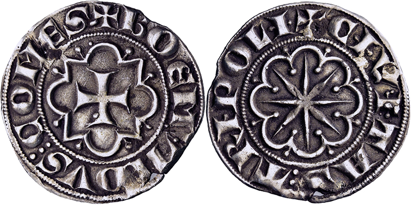 Ausland, KREUZFAHRERSTAATEN, TRIPOLIS, GRAFSCHAFT Boémond VII. 1275-1287, Gros o.J. Kreuz in Zwölfpass. Rs: Torburg in Zwölfpass (2; 1 Ex. mit winzigen Randausbrüchen; ss). Dazu 1/2 Gros (s-ss, Fassungsspuren). Metcalf 360. 3 St.